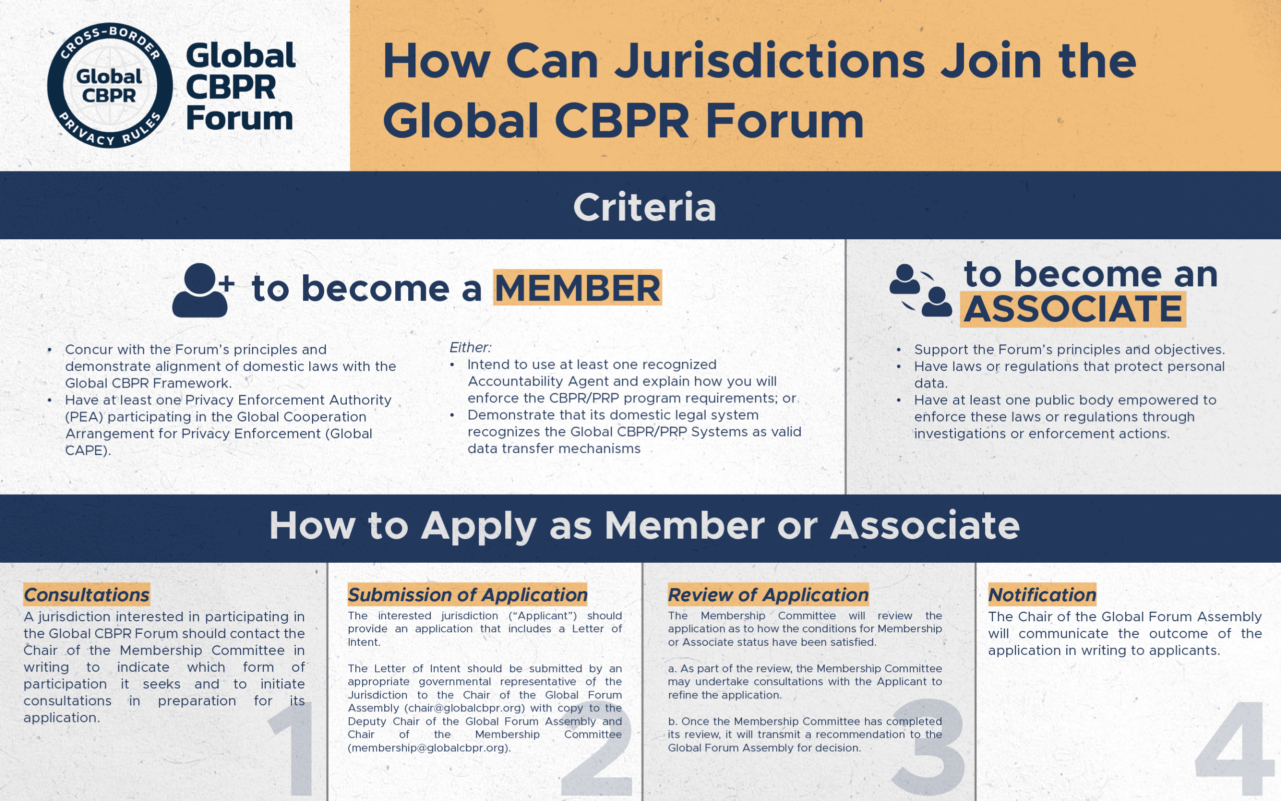The Global CBPR Forum also welcomes participation by other jurisdictions as Associates of the Forum. Any jurisdiction may seek Associate status if it: